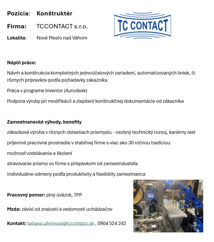 - ukončené vysokoškolské vzdelanie II. stupňa technického smeru (napr. strojnícka fakulta, materiálovo-technologická fakulta),