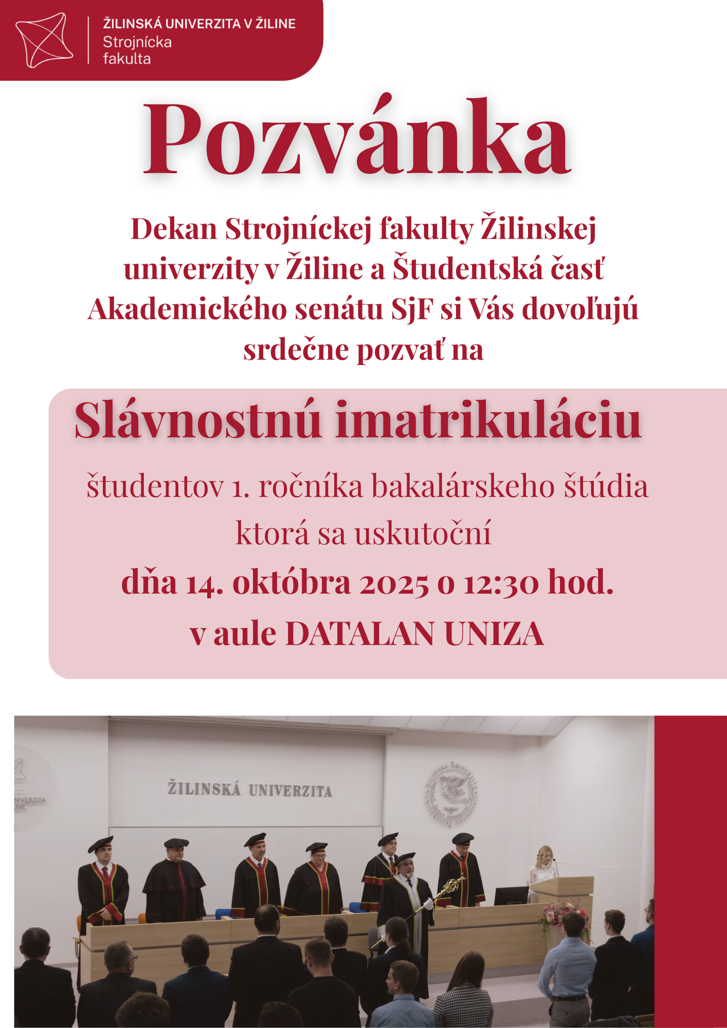Dovoľujeme si vám oznámiť, že rektor Žilinskej univerzity v Žiline udeľuje študentom UNIZA dňa 22. septembra 2025 od 10.00 hod. do 12.00 hod. rektorské voľno v súvislosti s konaním slávnostného otvorenia akademického roka 2025/2026.