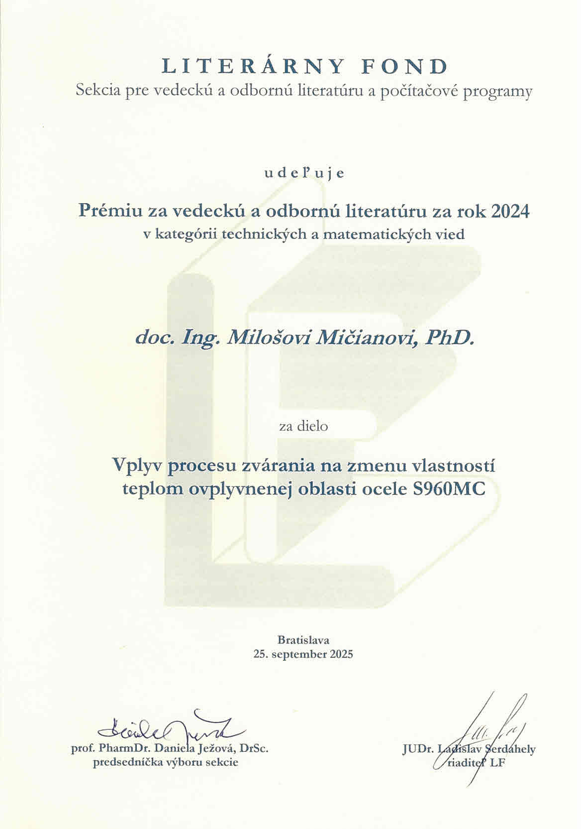 Admnistrator 09. október 2025 Prečítané: 26x Prémia za vedeckú a odbornú literatúru za rok 2024 Gratulujeme nášmu kolegovi doc. Ing. Milošovi Mičianovi, PhD. za získané ocenenie: Previous article: prof. RNDr. Pavel Lukáč, DrSc., dr. h. c. Predch. Next article: UNIZA ESA BIC Slovakia Nasl.
